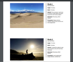 Ideas, Materials, and Processes (see further below for more information on what to include for the text – no more than 100 for each not all)